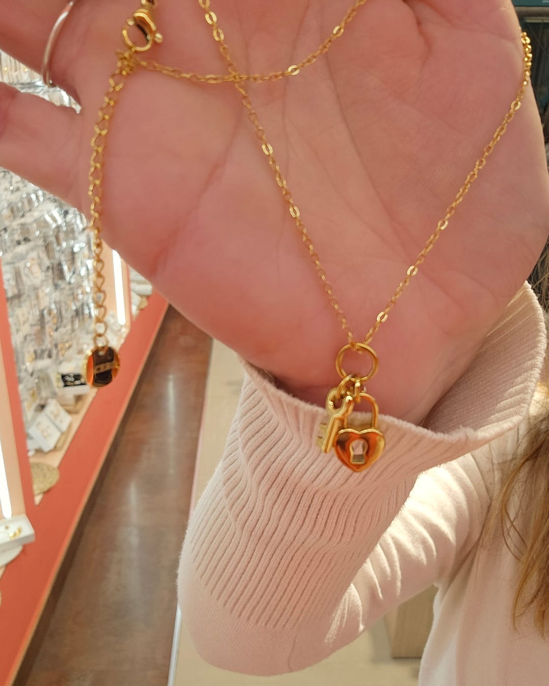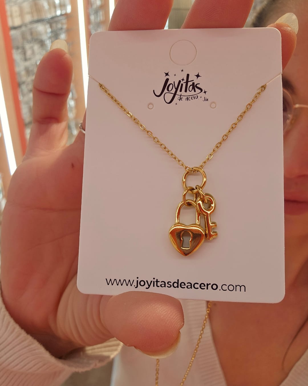 Luce elegante y con significado con este hermoso collar de candado y llave, símbolo de amor, conexión y momentos especiales. Fabricado en acero inoxidable de alta calidad, es resistente, no se oxida y mantiene su brillo por más tiempo.
