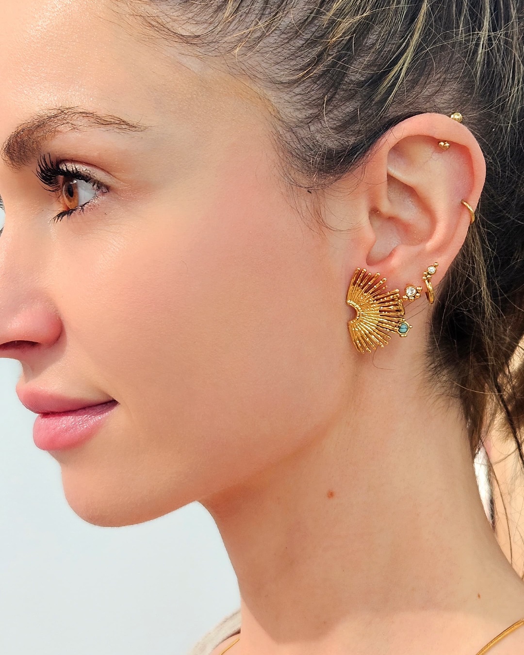 Fabricado con acero inoxidable y baño de oro de alta calidad, nuestros pendientes garantizan una durabilidad excepcional. 100% Waterproof