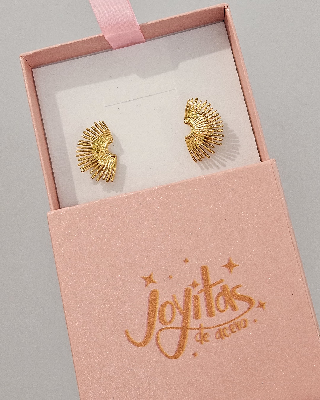 Los pendientes de acero Sol 🌞 son los más originales. Con unos pendientes en forma de medio sol y abanico están destinados a triunfar, no hay fallo. ✨