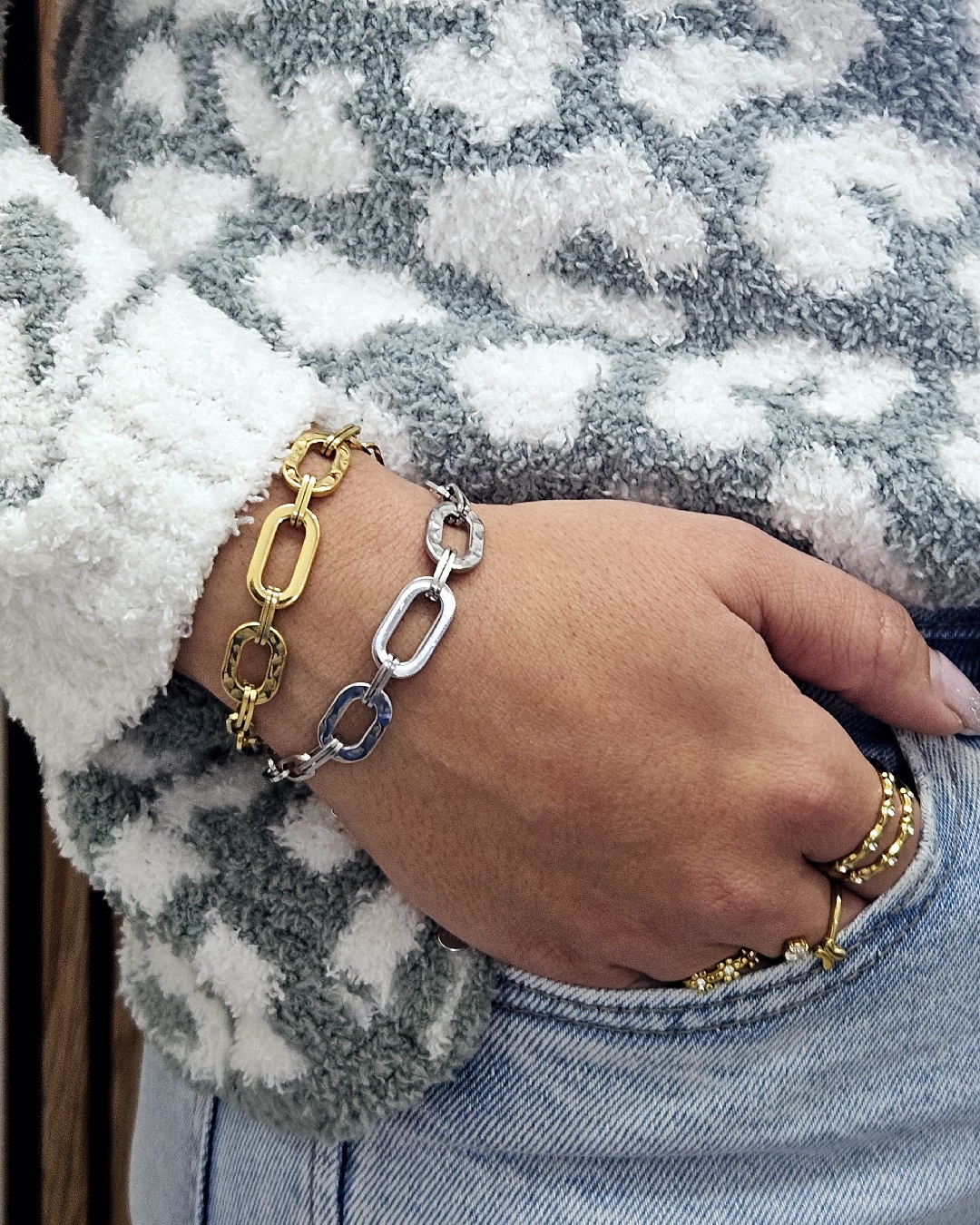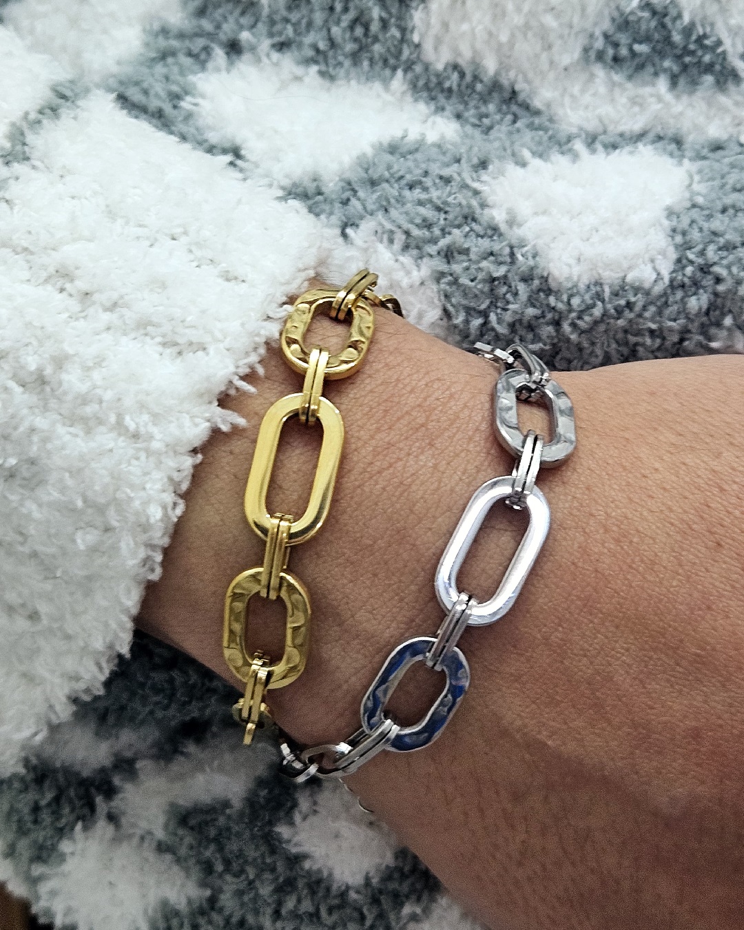 Una pulsera de eslabones en varios tamaños, perfecta para llevar como brazalete de diario. Combinala con cualquiera de tus joyas. Fabricado con acero inoxidable ✨, nuestra pulsera garantiza una durabilidad excepcional y una resistencia impecable al desgaste diario. Su diseño ajustable permite adaptarse a varias medidas de muñeca. 100% Waterproof🌊