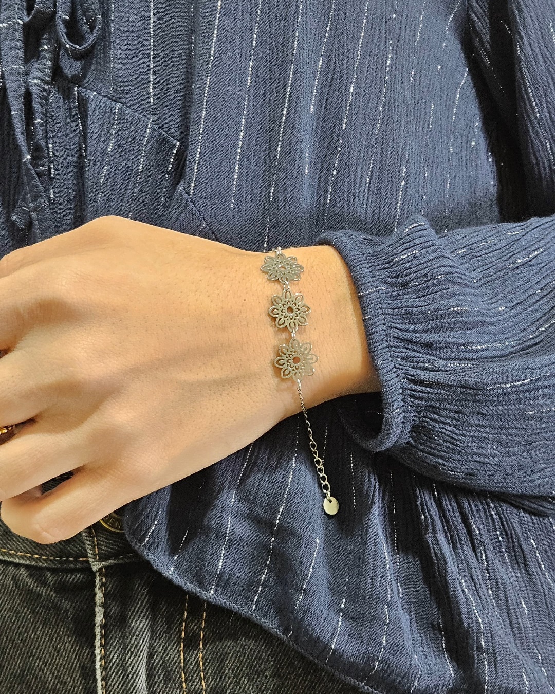 Tu pulsera Mándala lo puedes elegir en dos tonos: Acero inoxidable o Acero inoxidable con baño de oro.