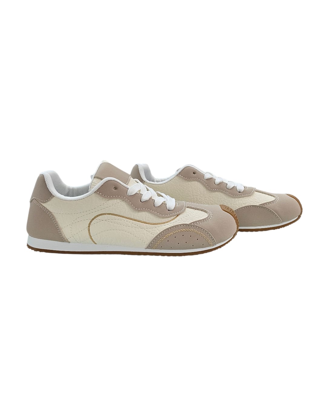 Acabado en tonos neutros con detalles en contraste que combinan con cualquier outfit. La suela de goma color caramelo ofrece un agarre superior y un toque vintage único. Perfectas para un estilo urbano, retro y minimalista.